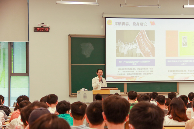 费凌副校长从“那年五四,那年青年”“挥洒青春,投身建设”“传承精神,担当使命”三个篇章进行了授课。在“那年五四,那年青年”篇章中,费校长动情的讲述了毛泽东、周恩来、蔡和森、邓小平、邓中夏等一个个革命先辈的光荣事迹;和大家一起回望了中国共产党在无数先辈的带领下,从建党开天辟地救中国到改天换地兴伟业,翻天覆地改革路到惊天动地复兴梦,中国共产党是如何从一艘小小红船越过激流险滩、穿过惊涛骇浪,成为领航中国行稳致远的巍巍巨轮的百余年波澜壮阔的历程。