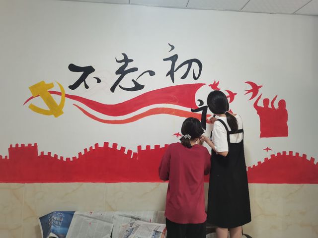活动前期,规划绘制方案。协会负责人与社区居民委员会进行对接,对将要绘制的墙体数量面积进行统计,对墙面内容进行初步的规划,以及对该小区的民风民俗进行调查。在了解了社区的总体情况后,协会负责人和社区居民委员会结合社区实际情况和当代社会主义核心价值观,共同合作设计了墙体彩绘的主题。协会和社区以绘画+宣传的形式,为每个社区单元确定了不同的主题,主要内容包括“不忘初心跟党走”、“垃圾分类”、“禁止高空抛物”、“爱老敬老”、“关爱未成年”、“绿色环保”等,通过宣传红色文化、当代精神文明来弘扬社会主义核心价值观,使之内化于心,外化于形。同时,用生动的绘画来倡导社区居民文明生活、绿色生活、幸福生活。在墙绘开始之前,协会成员积极报名参加本次社会实践活动,为活动的开展献策献力。协会负责人给协会同学讲解了画稿背后的意蕴和墙绘的注意事项,并根据每个同学的绘画经验和优势特长进行了不同的分工,旨在让每个参与此次社会实践的同学都能够全身心的投入活动并且能够最大化地发挥协会同学各自的能力,提高活动的效率和质量。同时,为保证参与此次活动的成员的人身安全,有针对性的进行安全培训,制定相应的安全预案和紧急处理措施。