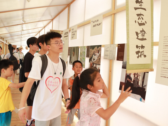 参观完西来市集后,实践团带着小朋友们前往“田野里“生态化画展,在画展中领会西来古镇古朴的原生态气息。画展展示了西来古镇的一些建筑思想和对田园生活的美好描述,画展中还有一些建筑的模型,小朋友们对画展有着浓厚兴趣,一些小朋友还为志愿者们讲解了画展中一些建筑的历史和发展。