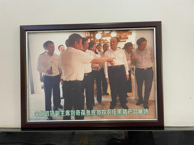 图为全国政协副主席刘奇葆参观微牧农庄黑猪产品展场留影 刘沁阳摄